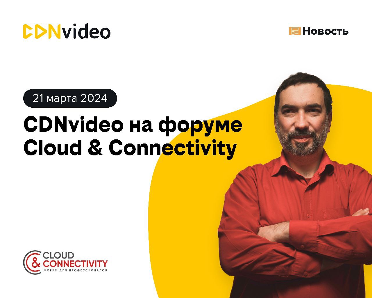 CDNvideo выступит спонсором профессионального форума Cloud & Connectivity 2024, который состоится 21 марта в СТАРТ ХАБ (г. Москва).